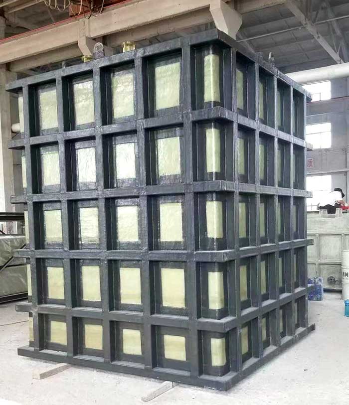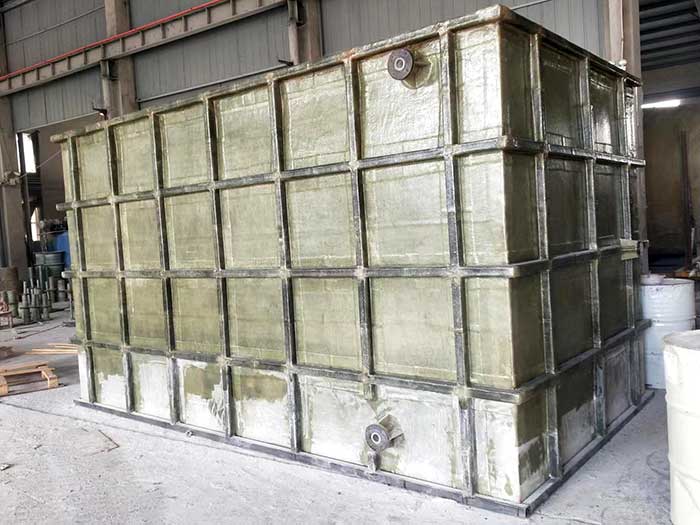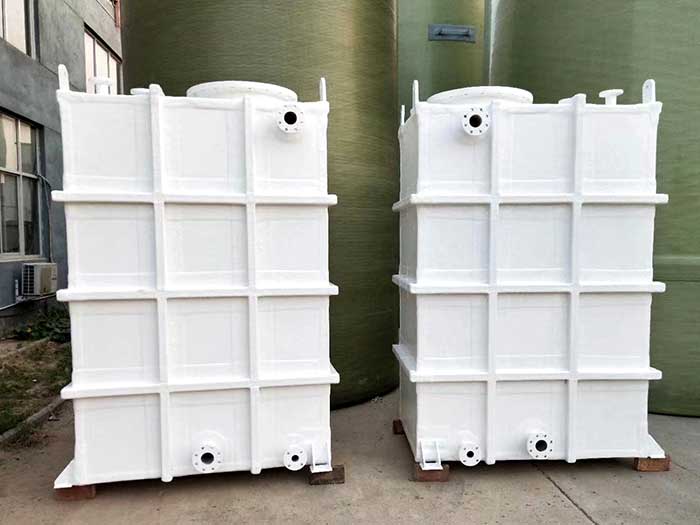 玻璃鋼方型儲槽具有耐腐蝕性能,在貯存腐蝕性介質時,可以耐多種酸、堿、鹽和有機溶劑,其形狀的特殊性,可以適應各種特殊的空間工況。